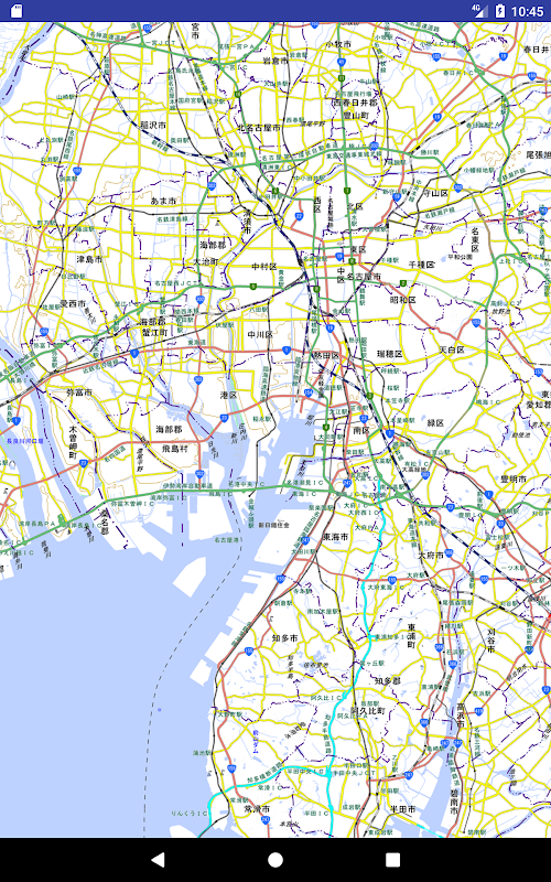 这个应用程序显示了使用GSI(地理空间信息局日本)瓦服务日本的地图。可用的地图类型为标准,面色苍白,白,照片,英语,海拔颜色。