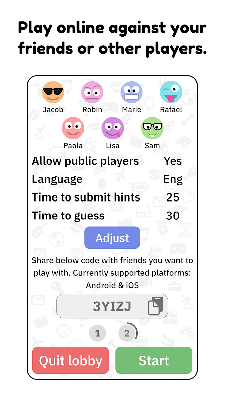 猜猜游戏大致基于世界著名的棋盘游戏“Just One”的概念。以全新的方式享受深受喜爱的经典文字游戏的乐趣!