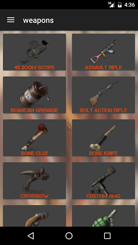 Rust guide is an hyper simple to use application allowing every user to explore items that you need, you get and you find inside the game grouped by categories.