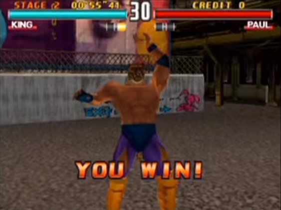 TEKKEN is an arcade game created in 1994. As with many fighting games, players choose a character from a lineup, and engage in hand-to-hand combat with an opponent. Unlike most fighting games of the time, TEKKEN allows the player to control each of the fighter's four limbs independently.