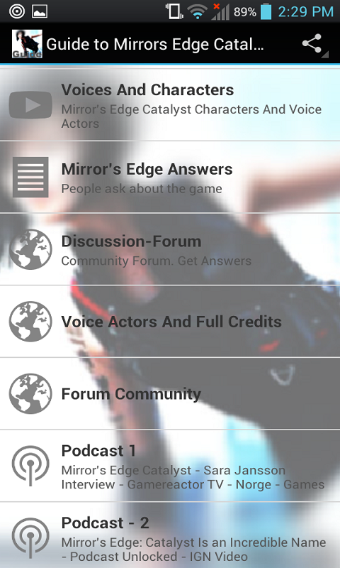 Do you have Faith Conners movement skills perfected yet? No... well your in luck because Guide to Mirror's Edge Catalyst gives you help with all parts of Mirror's Edge. Now you can dominate takedowns and time trials and take Faith to new parkour levels with these walkthroughs and strategies. Become a pro in no time