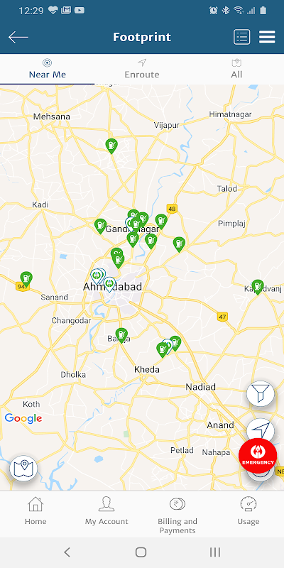 1)站定位器-通过多个选项在Google地图上找到我们的CNG站,包括“ CNG站列表”,您当前位置附近的CNG站以及使用“路由”选项在给定源和目标之间的CNG站。