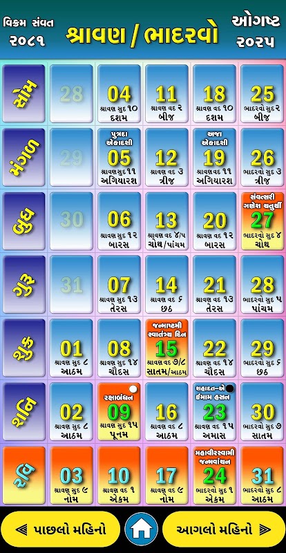 * 详细的古吉拉特语日历:查看 2025 年和 2026 年全年,包括所有重要日期、节日和假期。