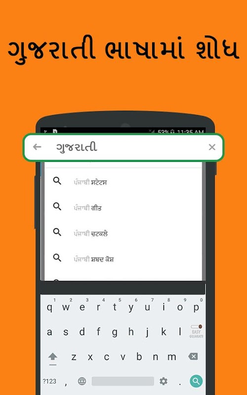 - 在-构建应用程序本身内给予古吉拉特语键盘。您可以在古吉拉特语使用该键盘直接输入。你并不需要从Play商店下载任何古吉拉特语键盘应用程序。