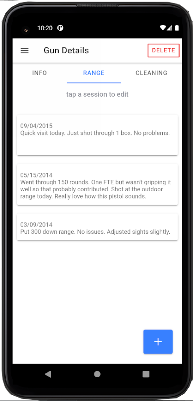 Gun Tracker 使您能够保存枪支的详细记录。您可以跟踪诸如发射轮数、清洁等内容,并记录各个范围会话。范围和清洁会话根据它们输入的日期自动组织,但可以在以后手动编辑。