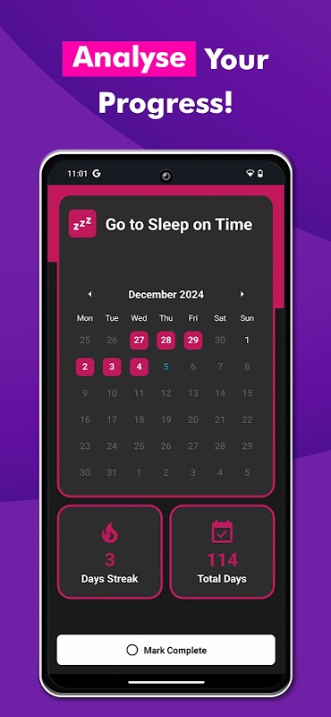 需要调整过去的完成情况吗?日历功能可让您点击添加或删除一天的完成情况,确保您的习惯跟踪始终准确。