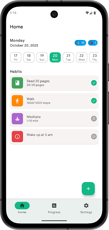 每完成一个习惯即可获得积分,让您的日常生活更具吸引力和成就感。
