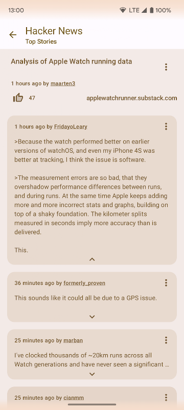 在手机和平板电脑上支持 Android 12 Material You 的 Hacker News 应用程序。