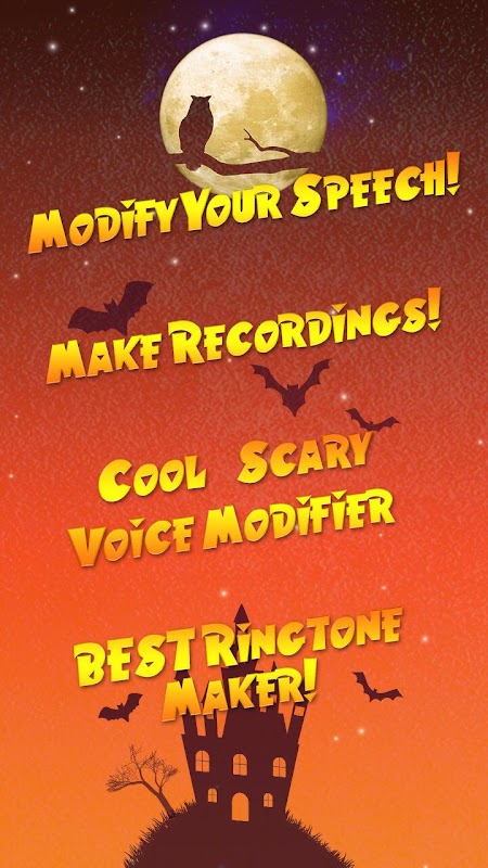 这个季节与万圣节派对的最佳语音编辑工作室一起玩得开心。 万圣节语音转换器 – 可怕的语音转换器将快速轻松地转换您的声音。录制您的演讲并为您的声音添加恐怖音效,以吓唬您的朋友,家人或您想要的任何其他人。您可以将此语音应用程序用作语音转换器,录音机,语音混音器以及万圣节铃声制作器。这个匿名的黑客语音转换器具有惊人的语音过滤器,让您有机会制作可以保存到您的设备,发送给您的朋友甚至设置为铃声的可怕声音。您不需要任何特殊的音频编辑技能来修改您的声音并使其听起来比实际上更可怕。快点,现在安装这个语音转换器万圣节,乐趣可以开始!