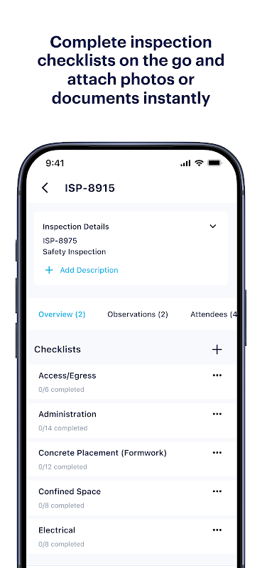 检查 - 使用可自定义的检查清单轻松完成结构化检查。记录发现、附加证据并简化报告流程,无需纸质文件,避免延误。