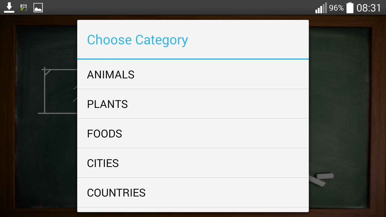 您可以选择要使用的单词类别,也可以将所有单词一起玩。