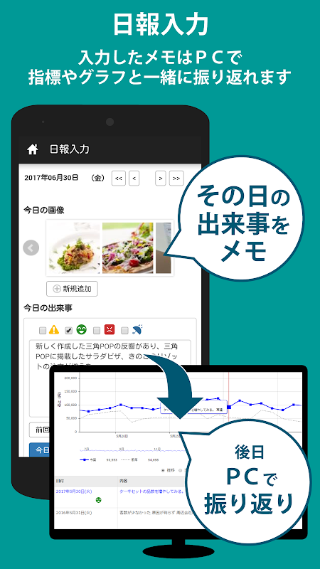 ◇(HANJO会计/公司会计)您可以输入记录您的日常意识的每日报告。您可以在PC上使用该图形进行回顾。