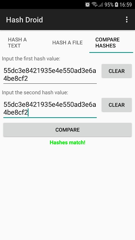 最后一个功能可以帮助您将计算出的哈希值与另一个给定哈希值进行比较,但更一般地说,您可以通过粘贴它们来比较任何哈希值。