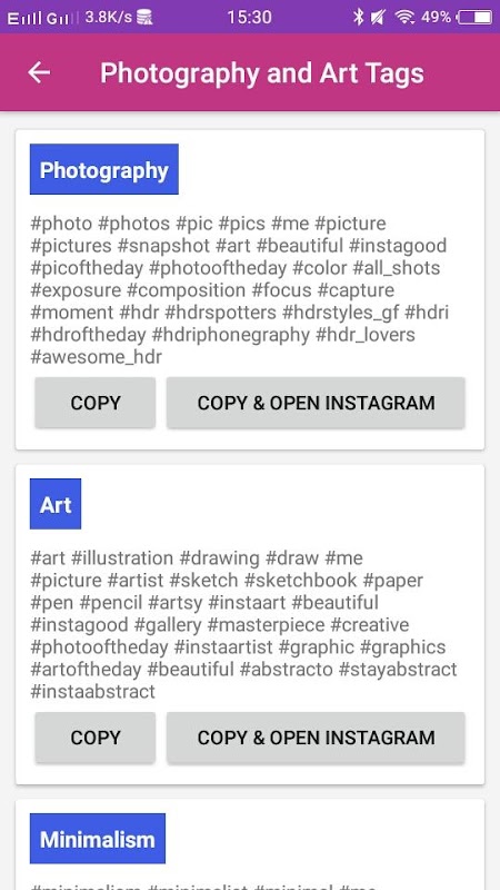 “Instagram Hashtags – likes & followers ” is a tool of hashtags that help your users to grow them profile to get more organic likes and followers, with the follwed hashtags and caption ! So anyone are an active user on instagram who uses a lot of hashtags in him posts Perhaps he looking to get more organic likes too! This is a great free app that will surely help your users quickly to put up hashtags and consequently maybe even get more likes or followers!