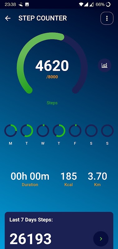这个应用程序使用内置检查器来计算您的步数,没有 GPS 跟踪,因此可以节省您的电池。您可以使用卡路里计数器计算每日目标的步数。您可以查看每日、每周或每月报告。