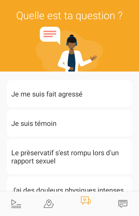 您在寻求帮助吗?避孕套?验孕?如有必要,可以轻松地在您附近或所需位置找到健康,防护或支持服务。