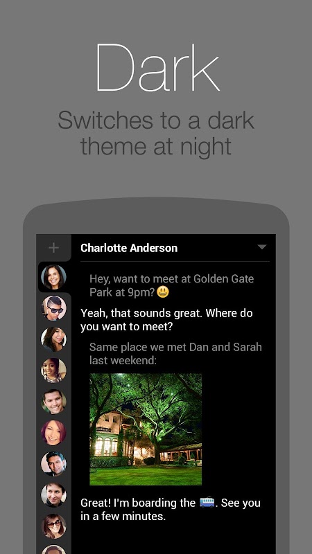 You can group chat easily, send and receive photos quickly, and switch between chats with a single touch. Hello is a streamlined way to text: no inbox, no clutter, no ads. Just you and your conversations.