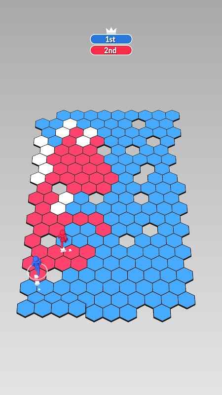 Move your character to the white hexes to take them. You win if you have the most. If you surround hexes with only your color, you will take them automaticaly.