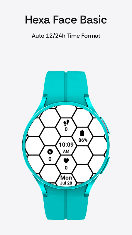 简洁时尚的六边形表盘,专为 Wear OS 智能手表的日常使用而设计。