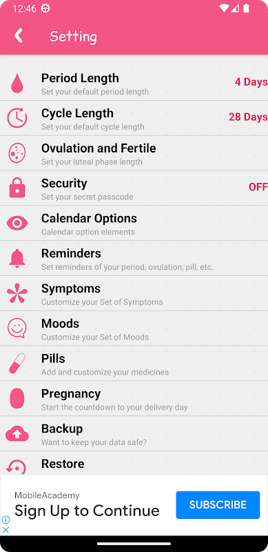 Keep track of your menstrual cycles with Period Calendar. It tracks your periods, cycles, ovulation, and the chance of conception. Period tracker helps both women looking to conceive and those trying to birth control.