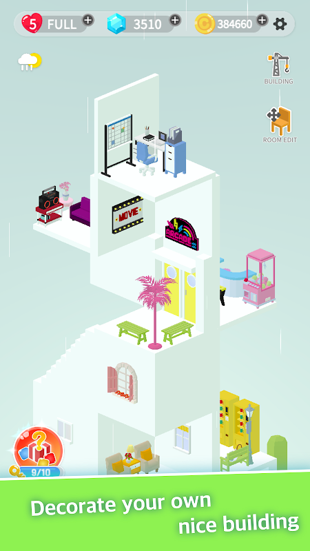玩拼图并提高建筑物的高度。您可以装饰建筑房间。