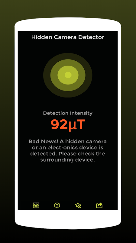 这个程序使用磁力计传感器。因此,它需要一个磁力计传感器来运行此应用,并检测隐藏的相机传输的辐射。由于传感器的限制,检测强度可能会因设备和环境而异。