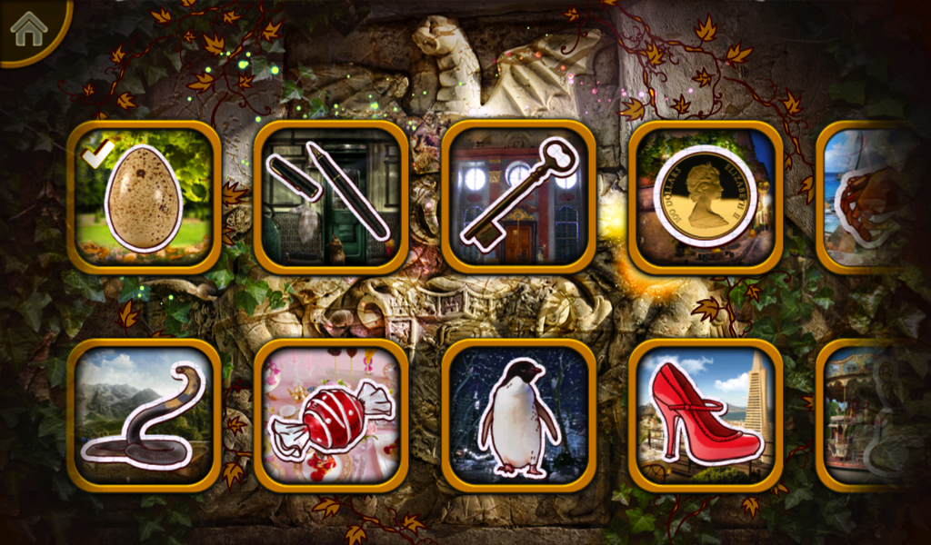 • Find objects hidden among the deftly crafted trompe l’oeil style graphics in Hidden