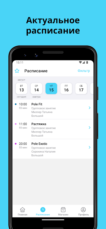 - 直接通过应用程序轻松快速地注册或取消团体和个人课程的注册。