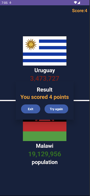 一个令人上瘾的高低游戏,关于哪个国家的人口最多。