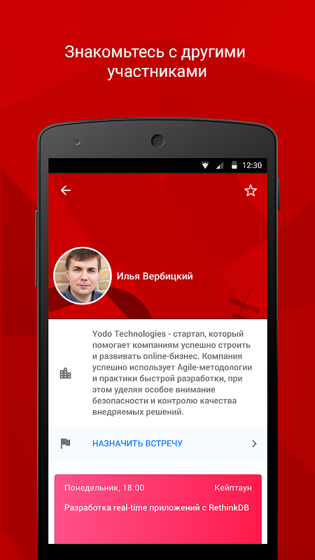 - составить собственную программу и получать оповещения о начале избранных докладов;