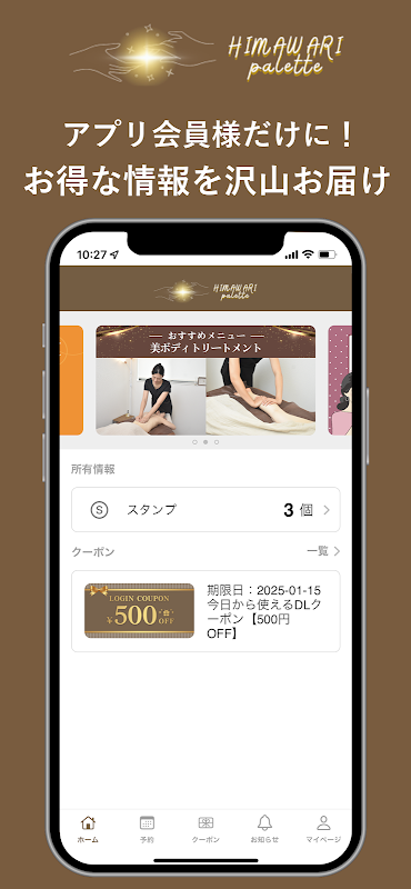 您可以通过该应用程序接收[HIMAWARI调色板]的最新信息和超值优惠。您还可以随时通过智能手机查看菜单、所需时段并进行预订。通过安装该应用程序,您可以更方便地使用[HIMAWARI调色板]。