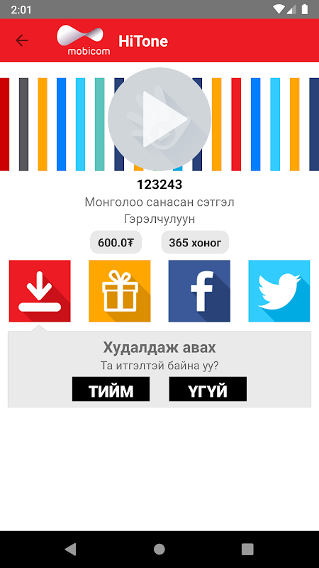 · HiTone үйлчилгээний санд байгаа олон төрлийн дуунуудаас хүссэн дуугаа хайж олох (Монгол, гадаадын шинэ, шилдэг поп, рок, RnB, хип хоп, аяз, хуучны дуунууд, мэндчилгээ, хошин яриа, шүлэг, зохиолын дуунууд)