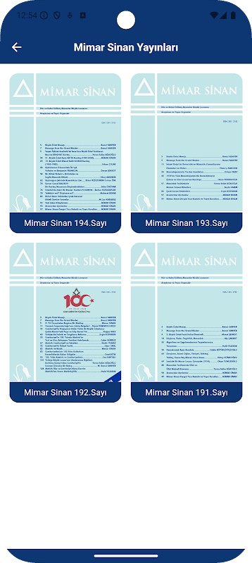 2. 期刊:您可以通过应用程序访问我们杂志的当前和过去的问题,例如 Mimar Sinan 和 Tesviye。