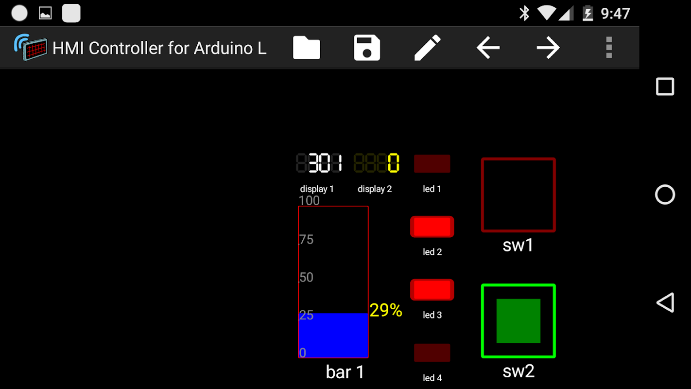 HMI控制器是针对Android操作系统的应用程序,允许您将Arduino板(UNO和Mega)与Android设备连接在一个简单的方法,它可以连接通过蓝牙或LAN(局域网),而不需要了解什么关于机器人编程,不知道很多功能或扩展编写代码在你的Arduino草图需要过去的,让沟通。 HMI控制器管理中宣称你的Arduino项目的引脚和变量的所有监控过程。