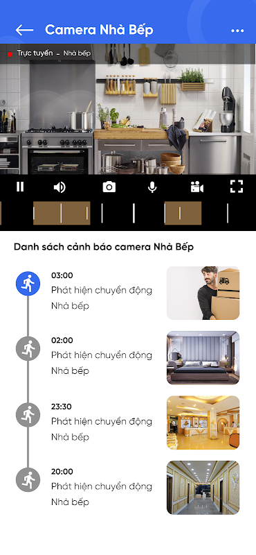 - Thấu hiểu nhu cầu của người dùng không thể quan sát thường xuyên, ứng dụng hỗ trợ tính năng cảnh báo và quản lý các sự kiện bất thường như phát hiện chuyển động.