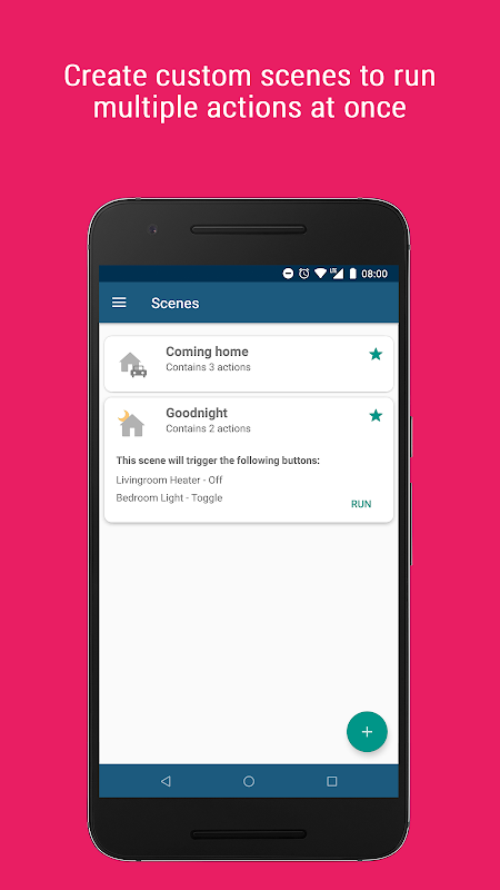• Create Scenes to effortlessly run multiple actions at once;