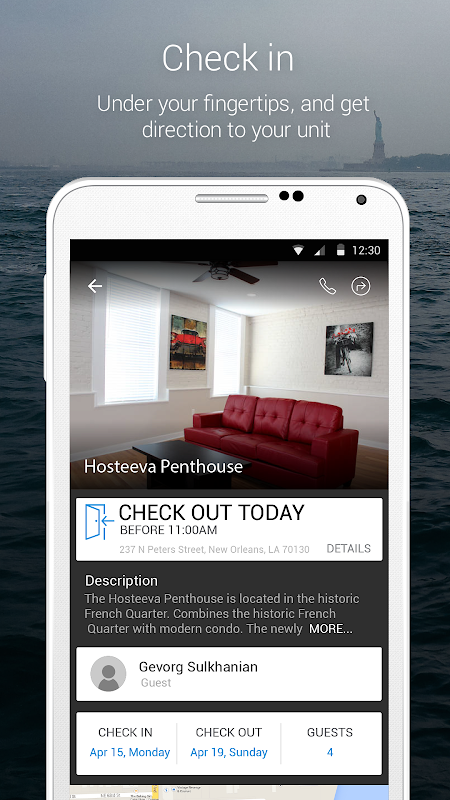 The app has all the tools you need as a Hosteeva guest. With Hosteeva app you can lock and unlock door of the property you booked, contact housekeeper, see photos of the property, where it’s located, much more.