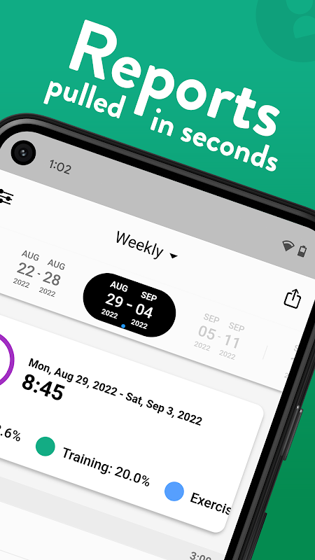 使用可自定义的小部件将时间跟踪直接集成到手机的主屏幕中,让您深入了解您的一天、一周和一个月。