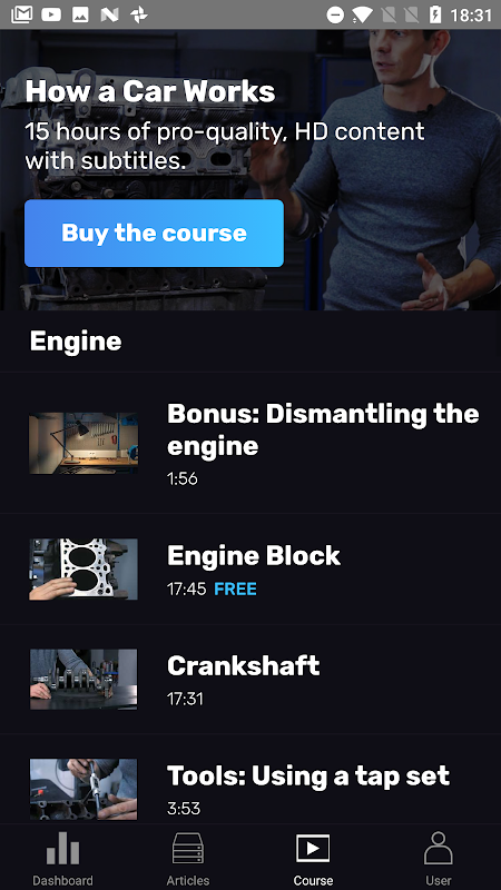 然后,进入“完整的汽车修理工视频”课程,其中包含14个小时的汽车工程和维修专业视频培训。使用增强现实在您的桌子上探索机械模型。