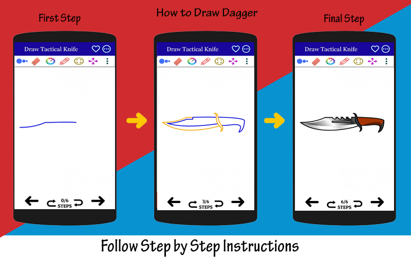 我们为初学者设计的匕首、冷兵器绘图教程应用程序专为那些想要学习绘画、提高绘画技巧、创造力和想象力的人设计。用大量的匕首绘画作为每个时代的灵感绘画,将你的绘画水平提高到高水平,这真是太棒了,还有很多可爱的东西要画。