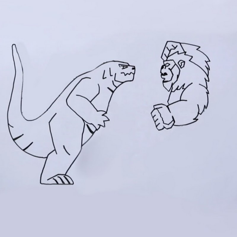 如果你之前已经画过,那么这个很好,因为今天我们需要这些技巧。您可以自己复制的素描图纸。愉快地画画。如何画哥斯拉与金刚。