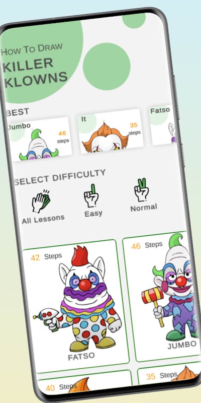 Killer Klowns 是一部具有独特角色的热门电影。如果您不知道如何绘制主要角色,那么这就是为您准备的培训应用程序!在这里,您会找到许多分步绘画课程。如何绘制小丑杀手角色训练应用程序将帮助您绘制自己喜欢的角色。在这里,您会找到许多分步绘画课程。
