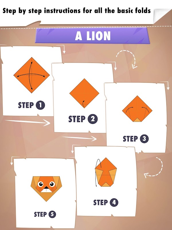 Learn How to make Origami Animals! Animals and Birds are a popular choice of origami. They're fun to fold and it's really cool to see them begin to take shape and look like their real life counterparts. The app has steps and instructions for various origami animals so just choose your favorite one and start folding!