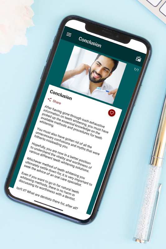 在这个应用程序中,您将学习一些可以美白牙齿的方法,以及如何避免被销售无效产品的公司所骗。我还将告诉您如何防止牙齿变黑,以及使用美白方法后如何使牙齿变白。