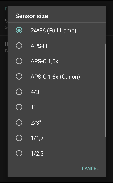 免费照片应用程序,根据传感器类型,光圈和焦距计算超焦距。