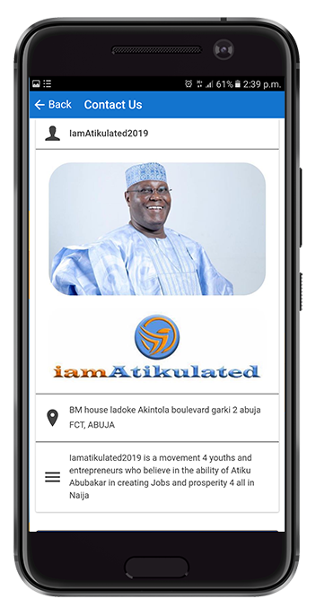 Iamatikulated2019 is a movement for youths and entrepreneurs who believe in the ability of Atiku Abubakar in creating Jobs and prosperity for all in Nigerian. We beieve that the future of our believe country is in our hands and come 2019, we will elect the right leader who will steer the country to the right direction.