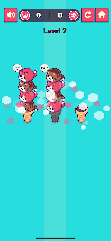 冰淇淋猫 - 颜色堆栈,颜色分类游戏是一款超棒的可爱猫咪游戏!将喵喵喵喵喵从一个冰淇淋甜筒移到另一个冰淇淋甜筒,并创建颜色匹配的猫塔!如果你喜欢可爱的小猫,你会喜欢我们的堆叠小猫游戏。你会喜欢听到芒奇金猫喵喵叫。许多人喜欢和可爱的魅力猫咪一起玩,它们会用喵喵的声音和毛茸茸的毛来照亮你的一天。
