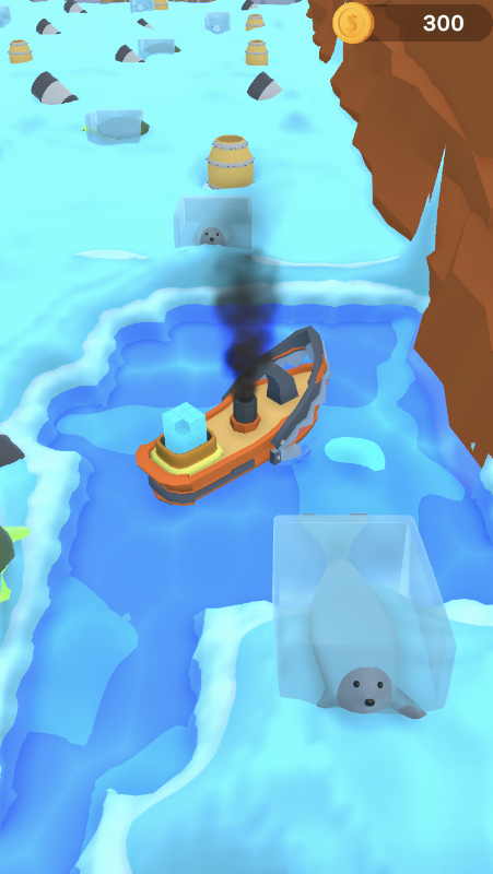 Es ist Zeit, die Beute auf dem Eis zu erkunden, Sie müssen die Robben und Delfine retten, die Sie brauchen, um dies zu tun, können Sie die Fässer benutzen, durch die Tore gehen und den Sieg genießen