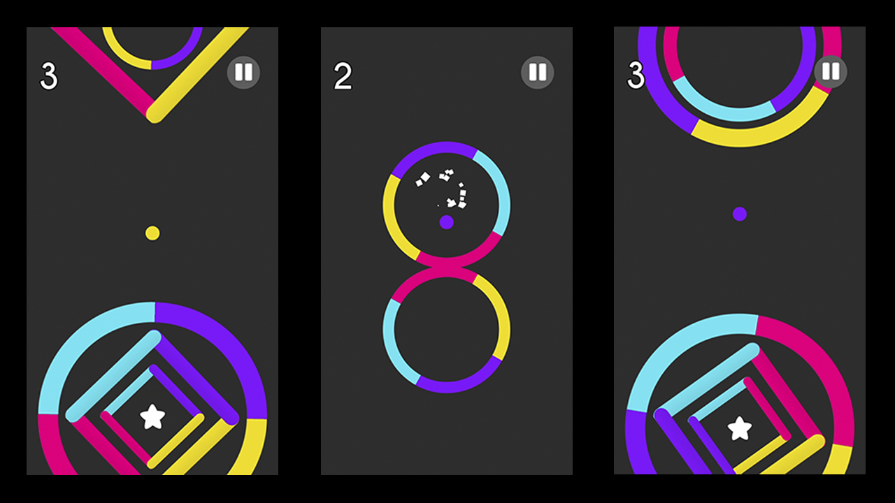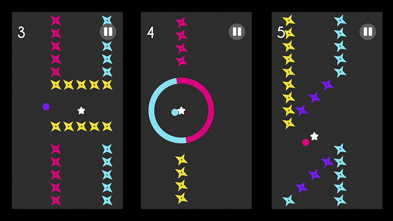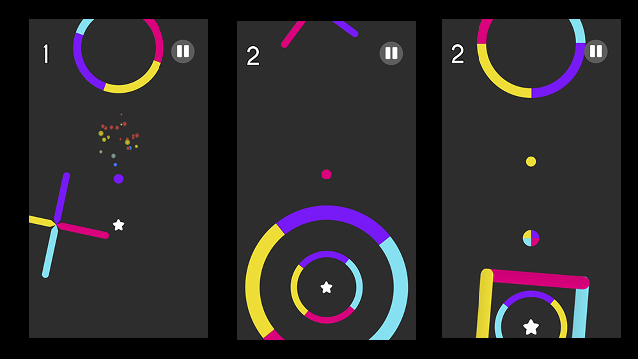Tap the ball carefully through each obstacle and your ball will switch color with some powerups.
