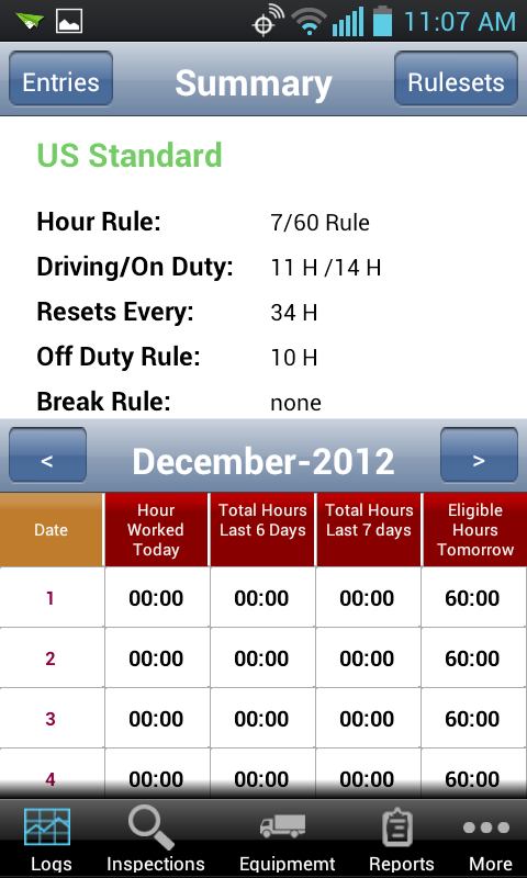 • HOS compliance with FMCSA Regulations (35 difference rule sets)